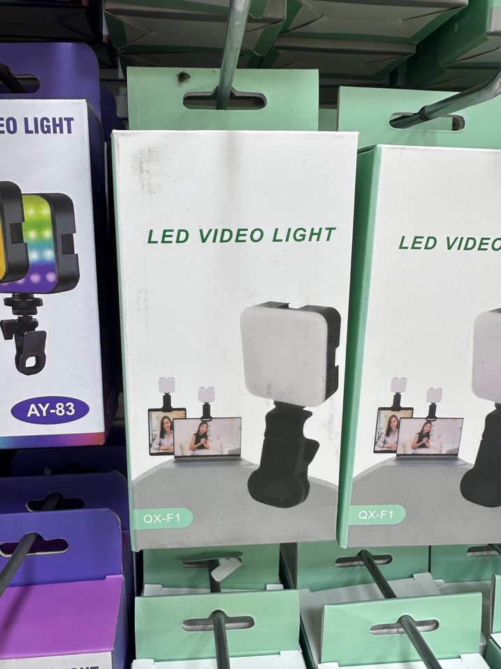 Khaki renkli, telefon tutuculu LED video ışığı QX-F1 modeli. Hafif ve kompakt yapısıyla video çekimlerinizi destekler.