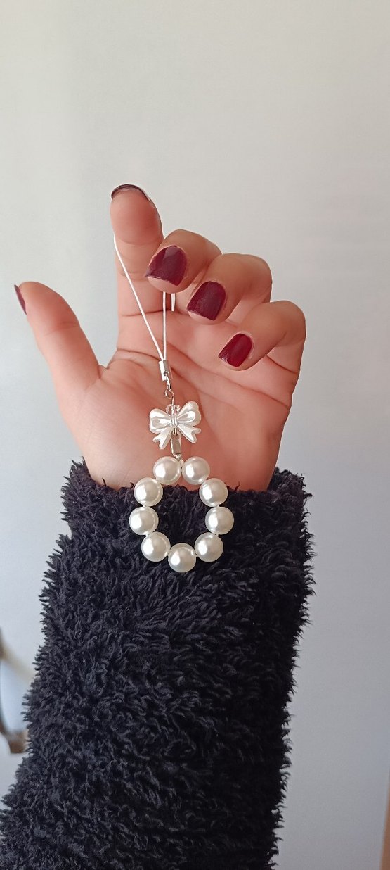 Almadan önce Lütfen yeni bir ilan açtırınız Telefon,Tablet, Fotoğraf makinesi, çanta, suluk v.s Bohem tarzda, inciler ile süslenmiş, günlük kullanıma uygun ışıltılı charm Minimalist ve bohem tarzlara uygun, parlak beyaz boncuklardan oluşan ve fiyonk detaylı anahtarlık.