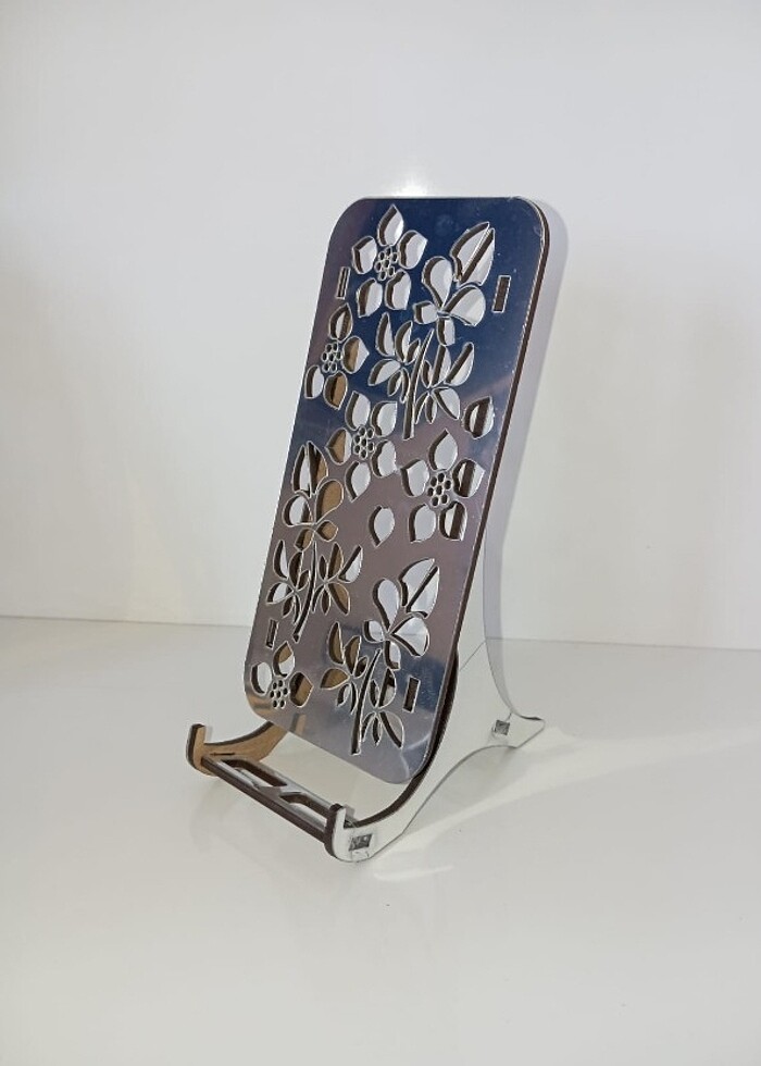 Beyaz ahşap ve pleksili siyah gümüş sari telefonluklar