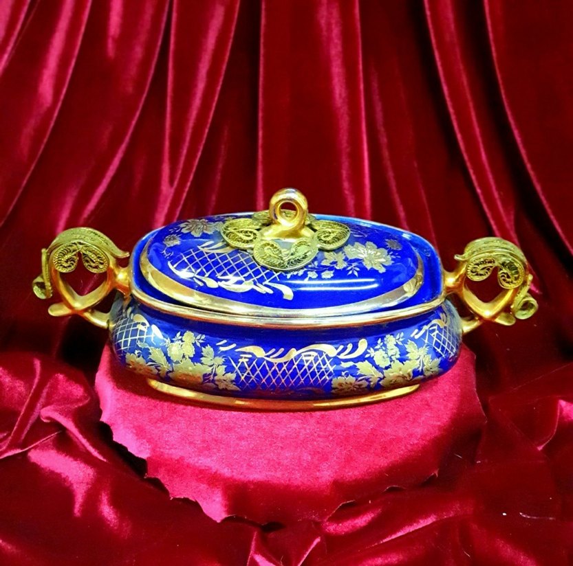 Telkari iscilikli Cobalt renk Porselen Sekerlik,Bonboniyer