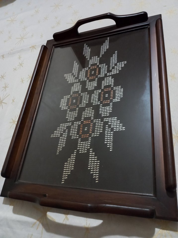 taç tel kırma teli ile işlenmiş ahşap tepsiye geçirilmiştir sıfır ürün dür #telkırma