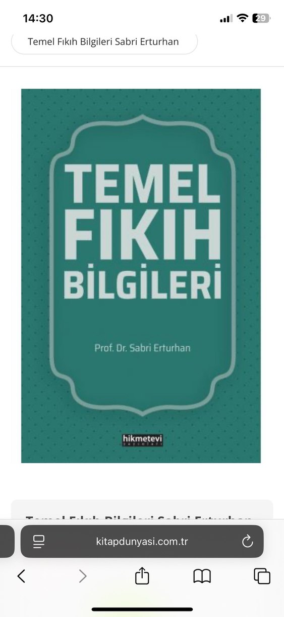 Prof. Dr. Sabri Erturhan'ın "Temel Fıkıh Bilgileri" adlı eseri, İslami hukuk temel bilgilerini içerir. Hikmetevi yayınevi tarafından basılmıştır.