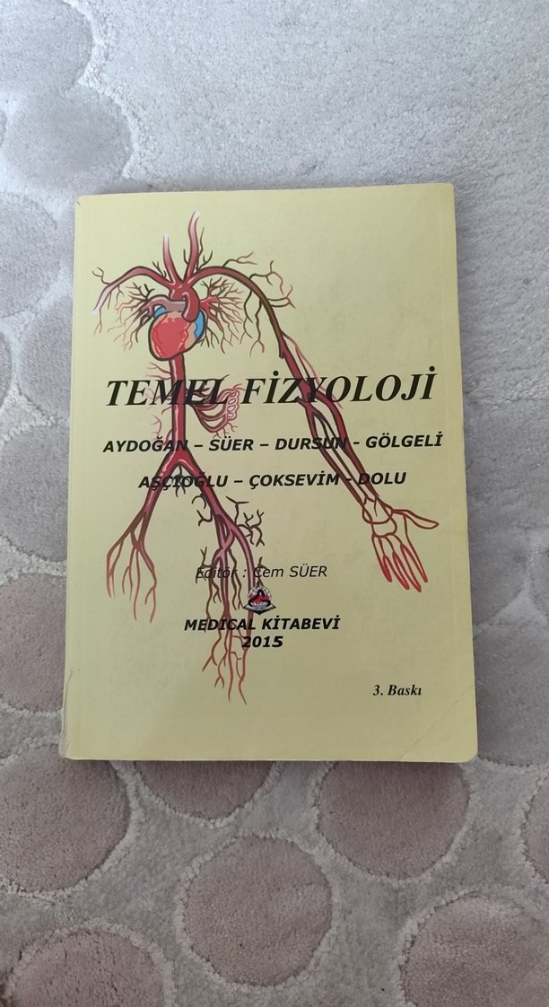 2015 tarihli 3. baskı 'Temel Fizyoloji' kitabı, temel fizyoloji konularını içerir. Kapakta kalp ve damarların anatomik çizimi yer alır.