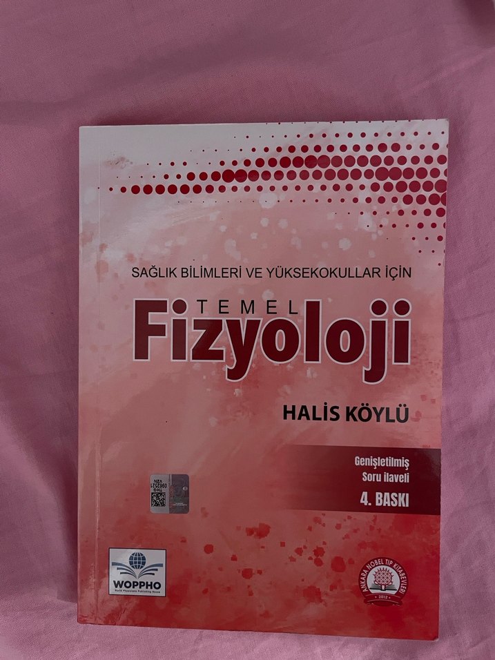 Halis Köylü'nün yazdığı, sağlık bilimleri ve yüksek okullar için genişletilmiş soru ekli 4. baskı 'Temel Fizyoloji' kitabı. Hiç kullanılmadı,yıpranma,hasar vs yok