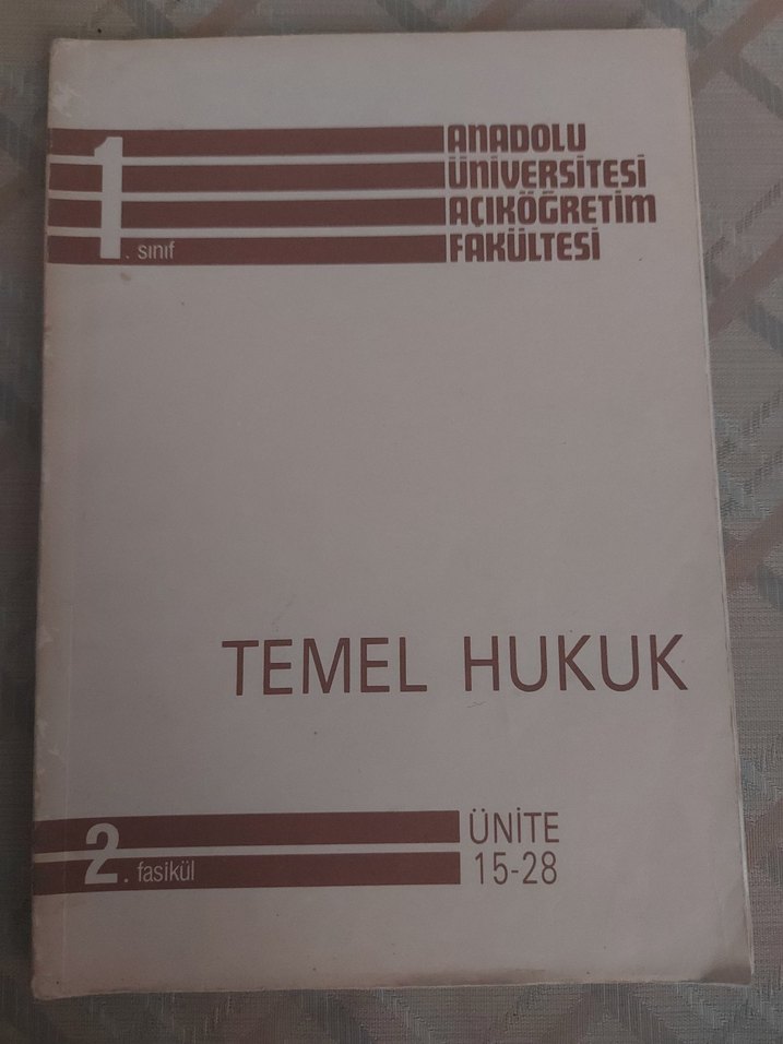 Anadolu Üniversitesi Açıköğretim Fakültesi 1. sınıf öğrencileri için 15-28 üniteleri kapsayan Temel Hukuk 2. fasikül kitabı.