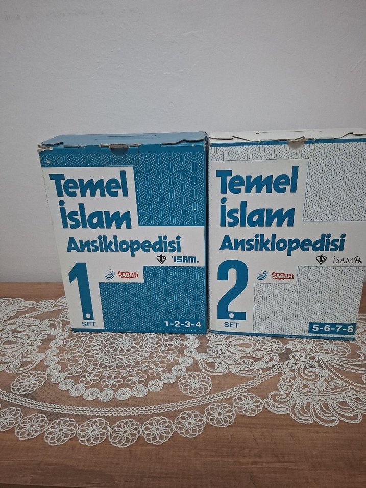 Temel İslam Ansiklopedisi 1 ve 2 setleri, 1'den 8'e kadar ciltleri içerir, detaylı İslam ansiklopedisi bilgisi sunar.