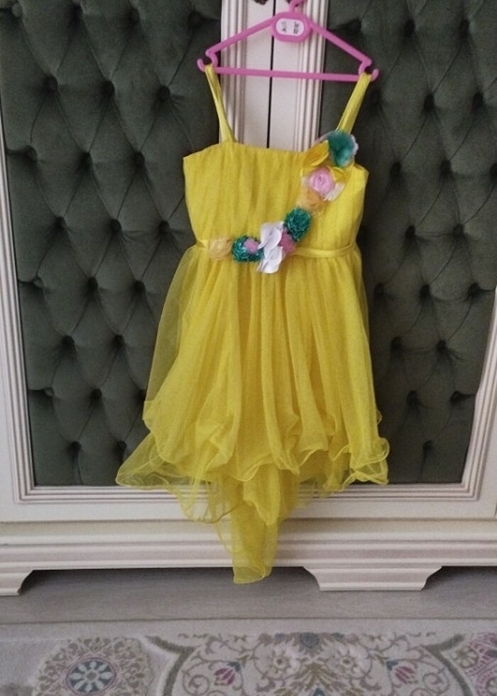 Ürünün hiç bir yerinde yırtık sökük yoktur temiz elbisenin arkası hafif uzundur