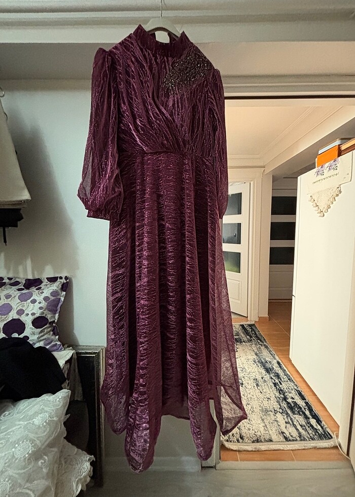 Bir kere giyildi temiz hareketli etek balon kol simli abiye