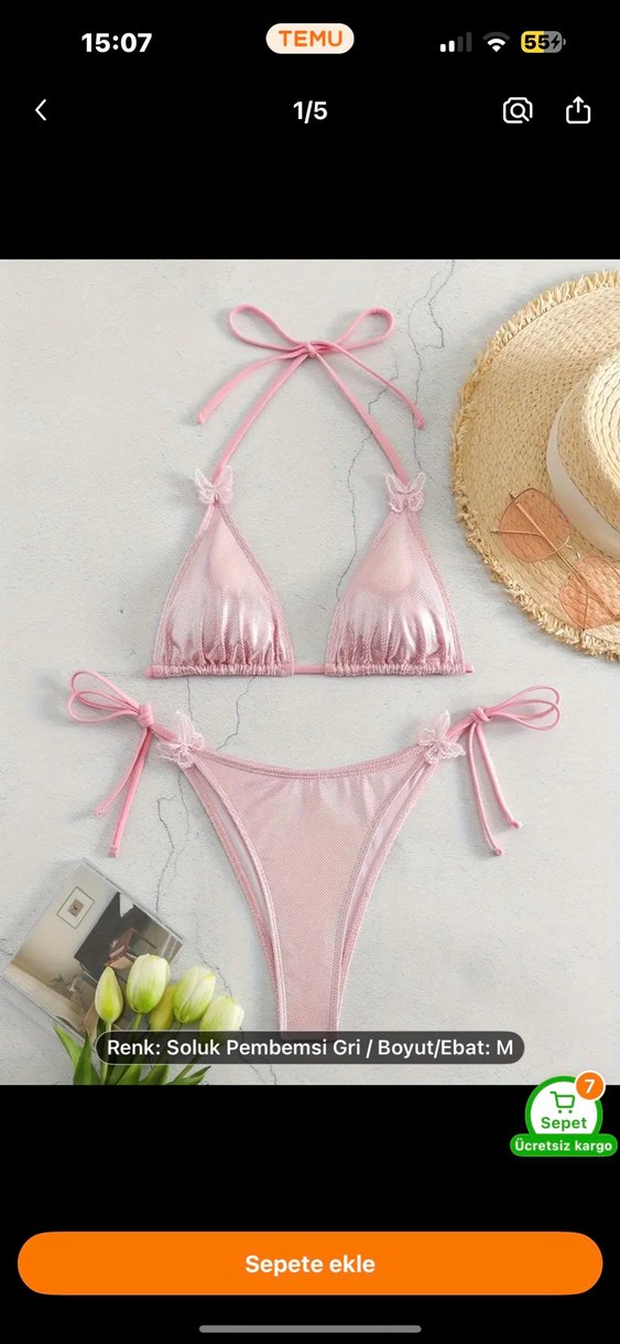 Temu Pembe Kelebekli Bohem Bikini Takımı