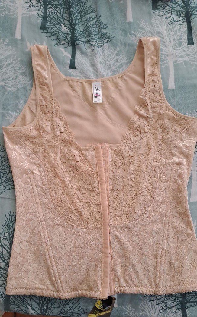 Ten rengi, dantel detaylı, önden çıtçıtlı, normal boyda ve pastel tonlarda kadın korsesi. anıl korse hiç kullanılmadı 3xl beden
