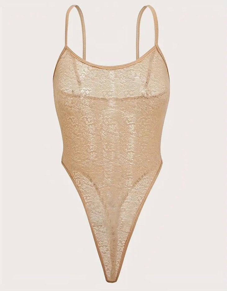 Ten rengi Dantelli İnce Askılı Kadın bodysuit