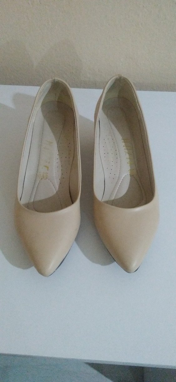 ayağima küçük geldigi icin satiyorum sayili giyildi ten rengi renkli, minimalist tasarımlı, kauçuk malzemeden yapılmış stiletto topuklu kadın ayakkabısı. Günlük kullanıma uygun, klasik ve şık.