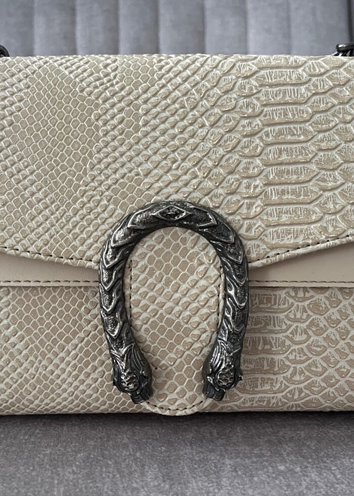 Ürün 1 defa kullanıldı, ten rengi zincirli çanta