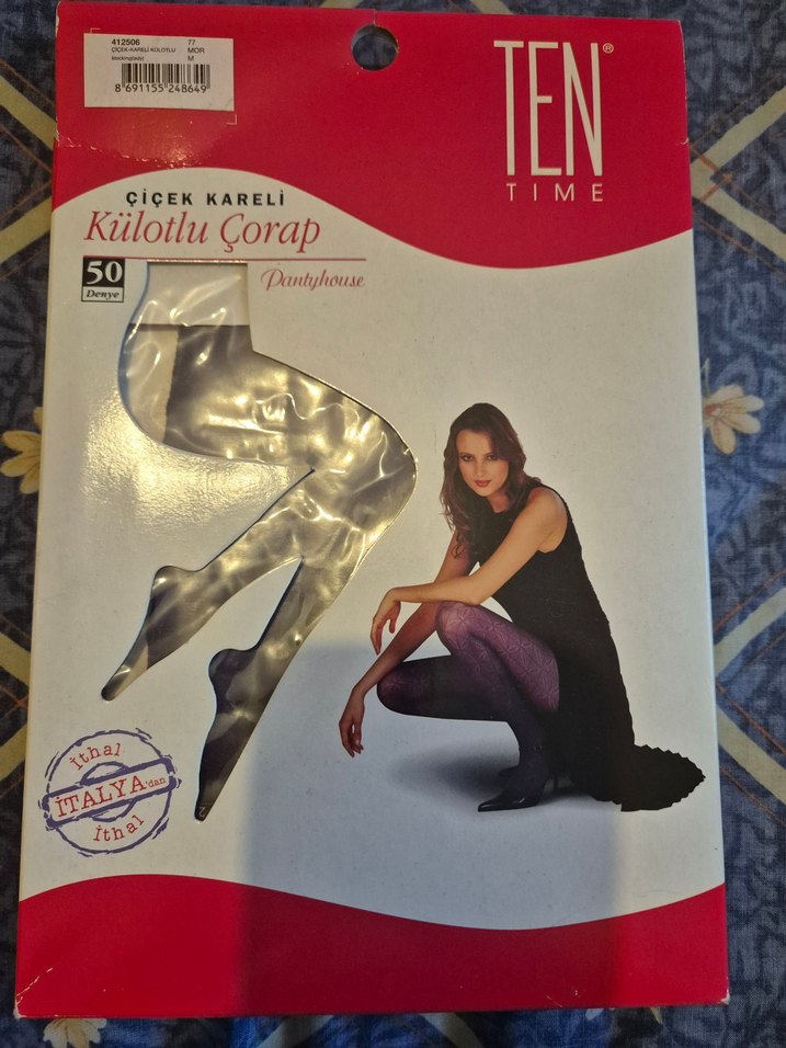 TEN TIME mor desenli külotlu çorap, esnek yapısıyla rahat ve vücuda oturan bir kullanım sunar. Normal midi boyda, günlük kullanım için uygundur.