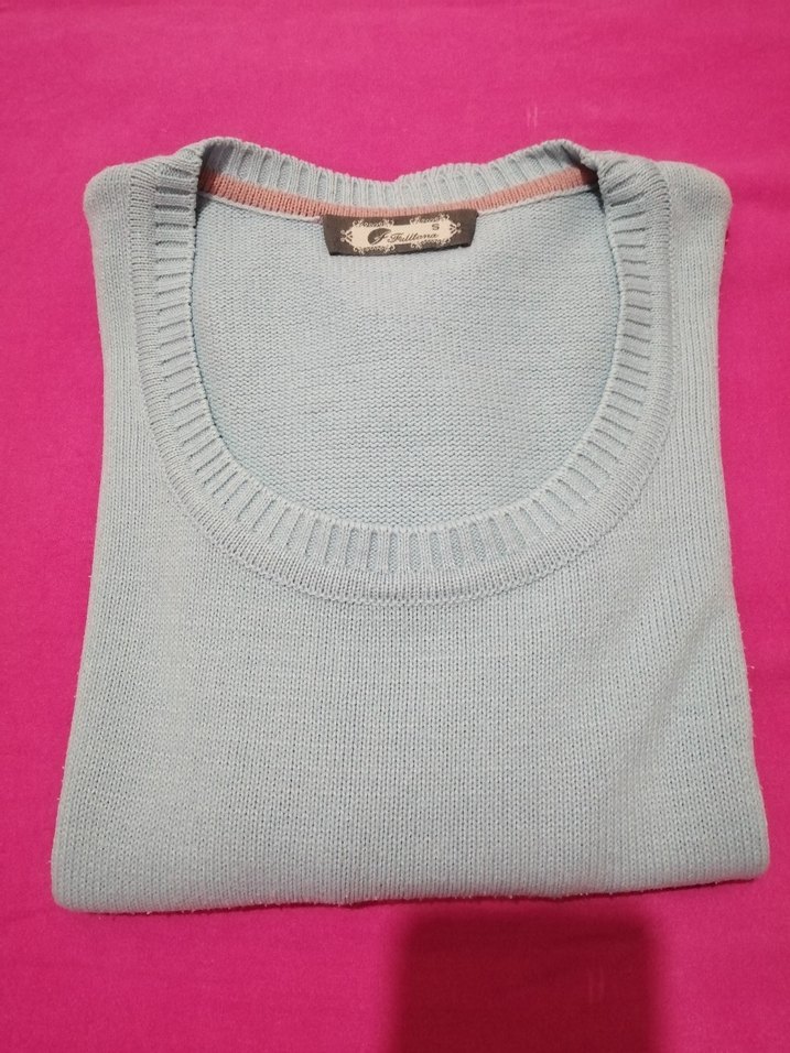 U yaka. Bebe mavisi. Sorunsuz temiz. Kolaltlarında biraz sararma var gösterildi leke çıkarıcı kullanmadım. Başka kusuru yok. Sökük delik yırtık yok. Ölçüler fotolarda kontrol ediniz. Tena Fulltena marka. Soft akrilik. İadesi yoktur. Göründüğü gibidir.