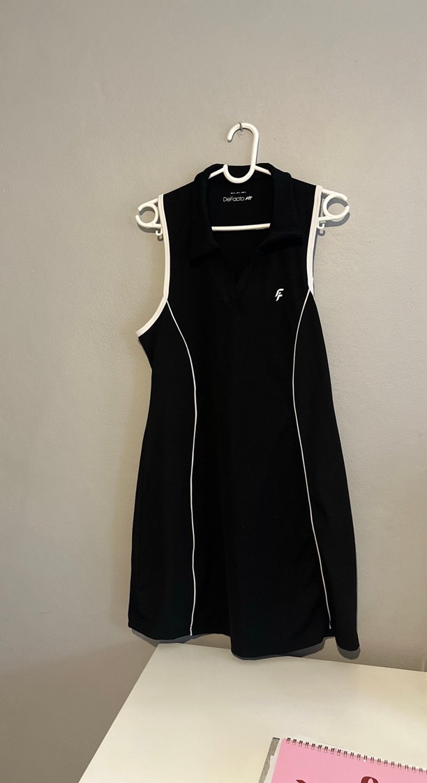 Yumuşak kumaştan, fermuarlı ve beyaz şerit detaylı, siyah, kolsuz, yüksek yakalı, midi boy, dar kesim spor yelek.
