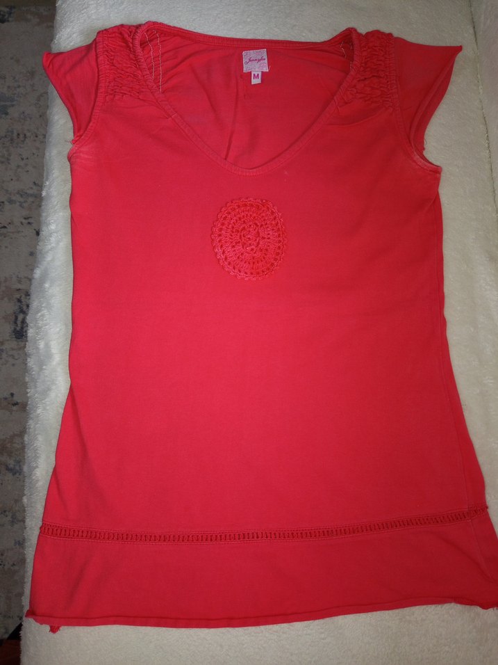 TENRİYFER MARKA 38 M BDN UZUN TŞÖRT BLUZ Dantel işlemeli Narçiçeği rengi, kolsuz, v yakalı, normal uzunlukta, yumuşak penye kumaştan bohem tarzda hamilelerde giyebilir bluz tşört tunik Günlük kullanım için uygundur sıfır değildir,