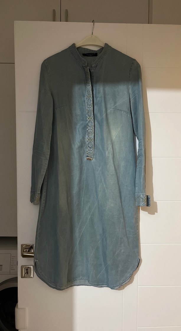 tuğba doque üürünüdür diz altı, nakış işleme oldukça şık ve zarif tunik tensel kumaş 40 beden uyumlu,