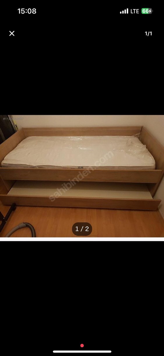 Bej renkli, açık tonlu ahşap yavrulu karyola. Yer Ankara