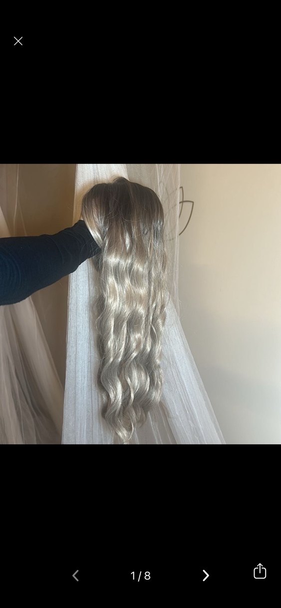 Şeffaf yapıya sahip, bej-gri tonlarında dalgalı ve ipeksi saç teliyle minimalist ve avangart stillere uygun saç aksesuarı. ✨
