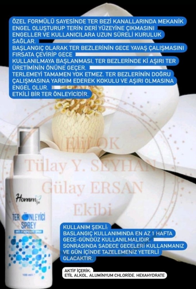 Özel formülüyle ter bezlerinde mekanik engel oluşturarak terin deri yüzeyine çıkmasını önler. Uzun süreli kuruluk ve koku kontrolü sağlar. Başlangıçta en az 1 hafta gece-gündüz kullanılır, sonrasında sadece geceleri yeterlidir.