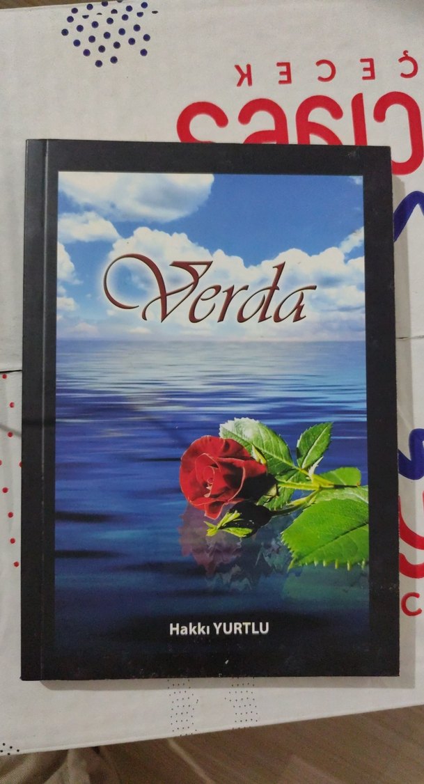 Hakkı Yurtlu'nun "Verda" adlı şiir kitabı, sakin suda yüzen kırmızı bir gül ve bulutlu gökyüzü görseliyle kaplanmıştır.
