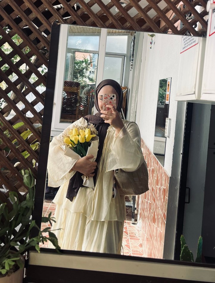 Sarı, pamuklu uzun alt üst takım , 1 kez tatilde giydim bluz üst gömlek ve etek olmak üzere 3 parça olarak satılıyor