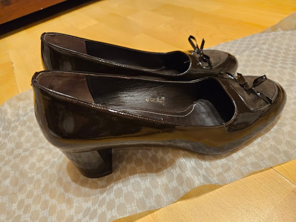 Tergan marka kahverengi parlak gerçek deri ayakkabı. Ürün yeni olup sadece bir defa kısa süreli giyilmiştir.