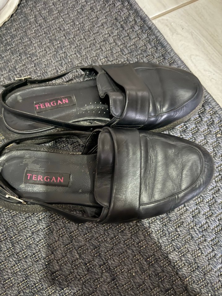 Tergan marka siyah kadın babetler, dolgu topuklu ve tokalı tasarımıyla gotik ve Paris tarzını günlük kullanıma sunar.