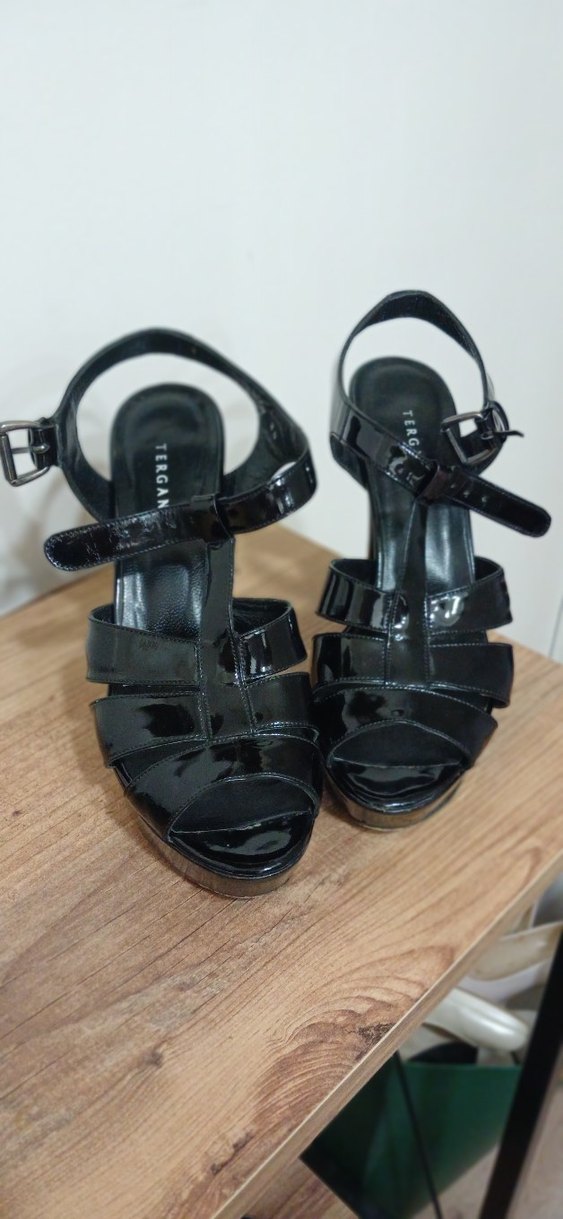 Siyah parlak platform topuklu, tokalı rugan ayakkabı orijinal üründür topuk boyu 12cm