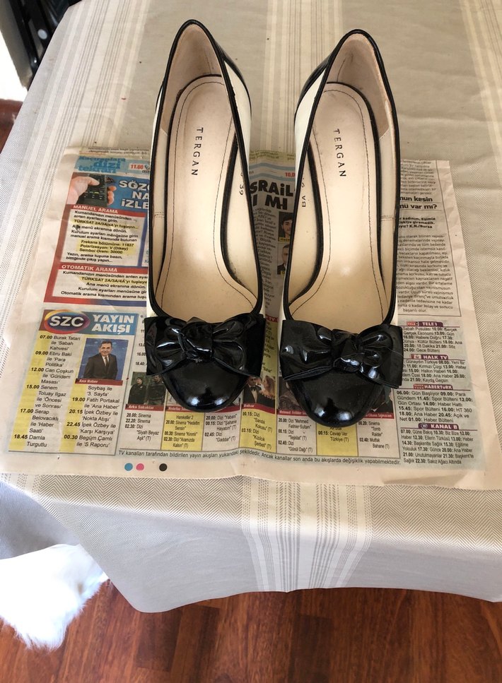 Tergan Siyah Rugan Fiyonklu Topuklu Stiletto
