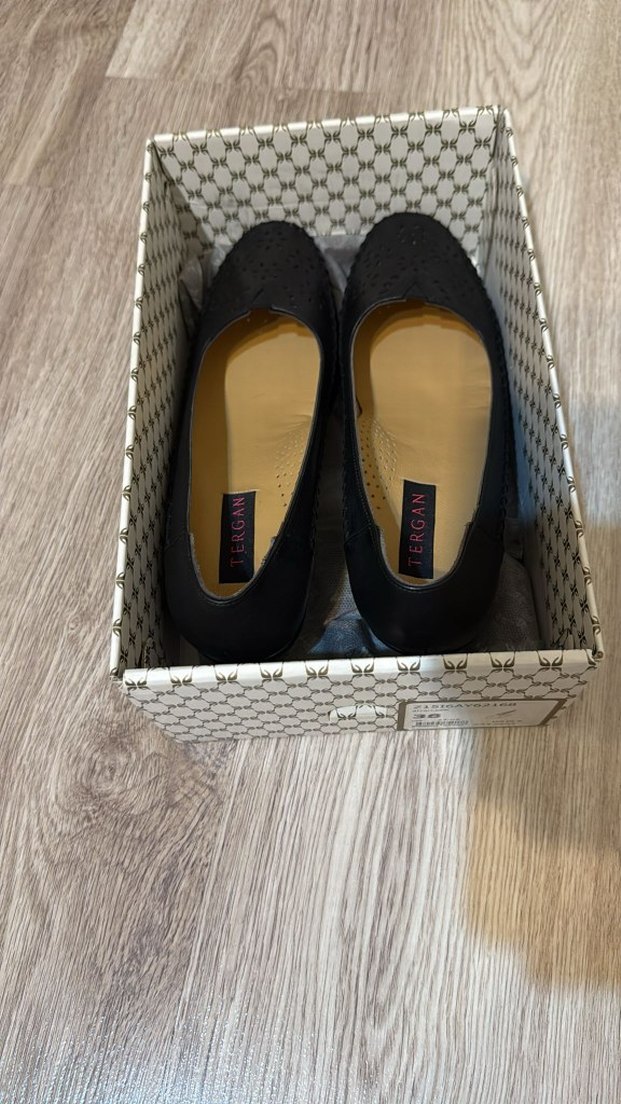 TERGAN Siyah Tokalı Kadın Topuklu Babet