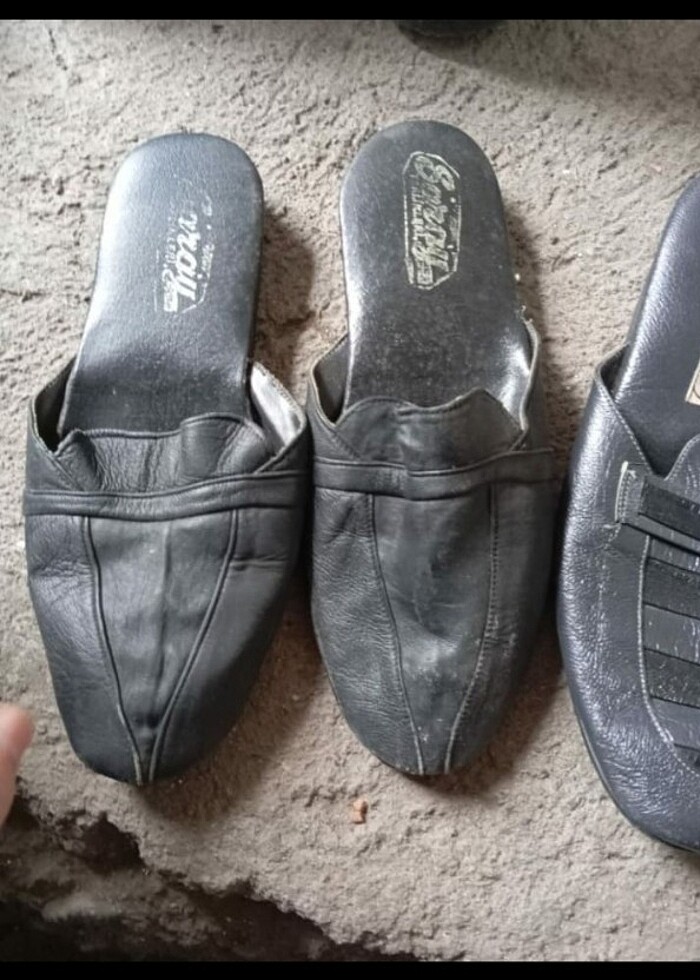 2 tane deri ev terliği İki tane de bayan bot biri dolgu topuklu birisinde topu var topukları 2,5 2 santim arasında bir tane de babet ayakkabı ayakkabı ve terliklerde herhangi bir hastayı yırtık yok çok az geldi uzun süre kutuda bekletildi hepsini toplayarak satmayı düşünüyorum Numara 37