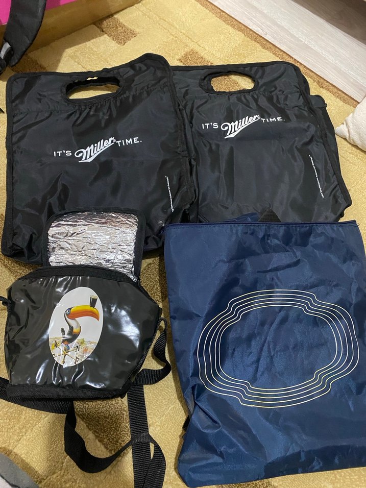 Saplı, baskılı siyah katlanabilir saklama çantaları. Eşyaları düzenlemek için dayanıklı ve kullanışlı. İzoleli ve standart modeller içerir.