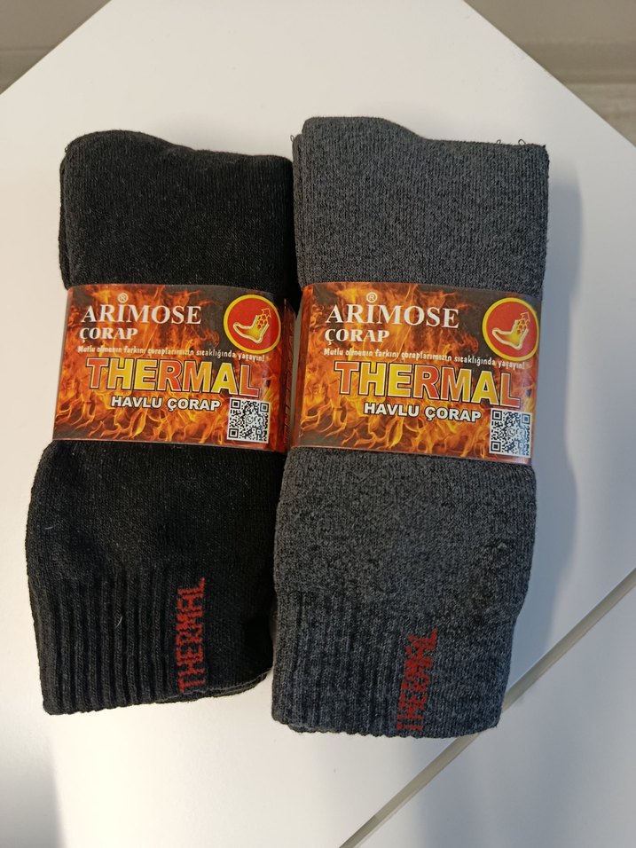 Gri ve siyah renklerde,termal ve havlu yapıda erkek çorapları. Ayakları sıcak tutar. Hiç giyilmedi,yeni etiketli.