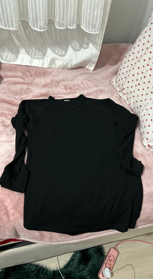 Yumuşak ve sıcak kumaştan, uzun kollu, yuvarlak yakalı, siyah Rahat ve salaş kesimiyle günlük kullanıma uygundur.