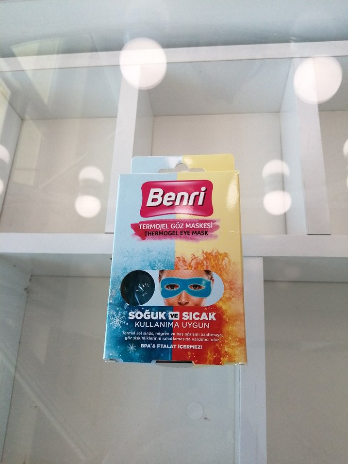 Benri termojel göz maskesi, sıcak ve soğuk kullanım için uygundur. Gözleri rahatlatır ve canlandırır. BPA ve ftalat içermez. ❄️