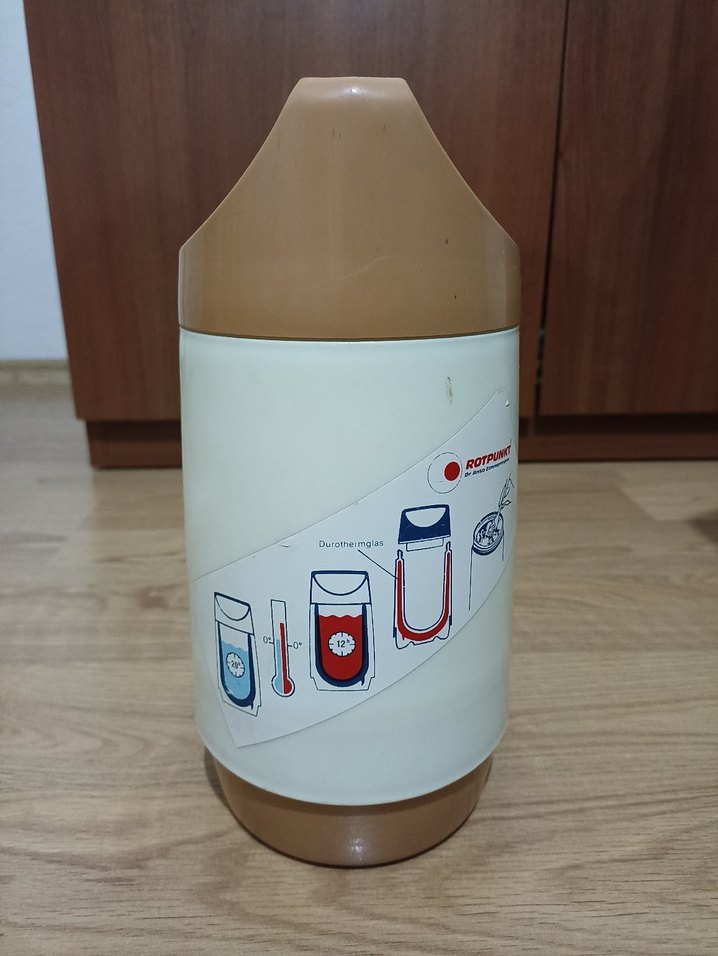 icecekleri ve yiyecekleri sıcak tutar ve güvenli kapak tasarımına sahiptir. Gövdesinde kullanımı kolay talimatlar bulunur. Uzun zamandır kullanılmadığı içinde ve dış kısmında sararmalar mevcut