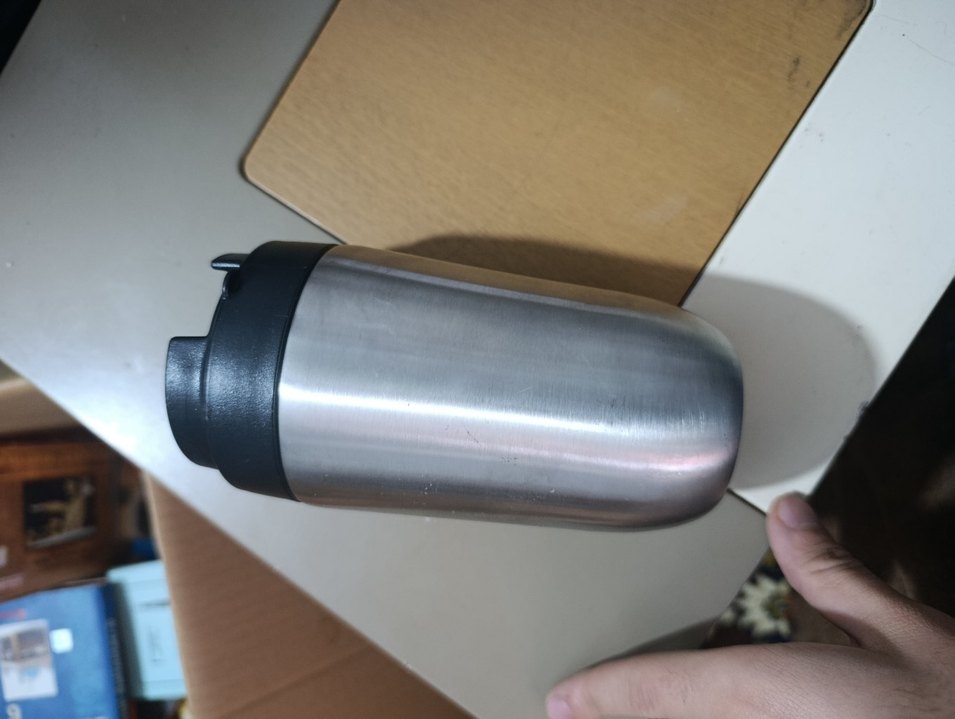Gri renkli termosu, içecekleri uzun süre sıcak veya soğuk tutar, dayanıklı dış yüzey ve güvenli kapak içerir. ikea