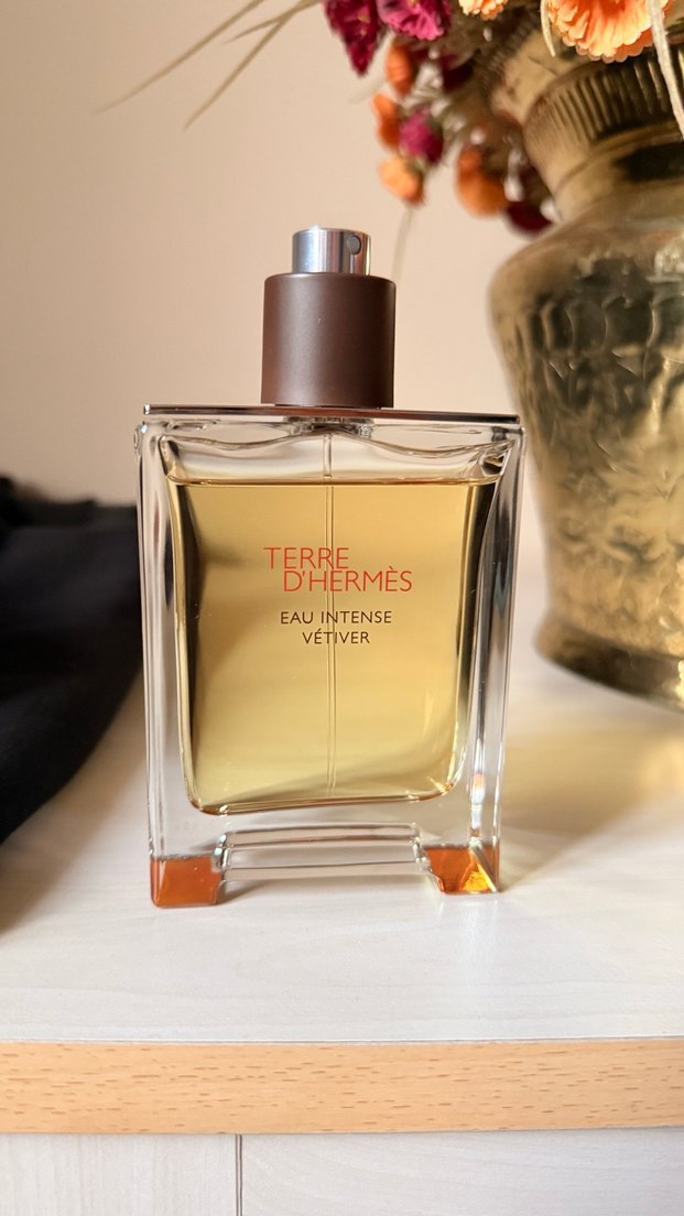 Terre d'Hermès Eau Intense Vetiver, koyu bej tonlarda, vetiver notaları içeren modern Paris tarzı erkek parfümüdür. ! çok az kullanılmıştır. (ürün 100 mldir şişe içerisinde 80-90 ml vardır. ) ! ürün orjinaldir.