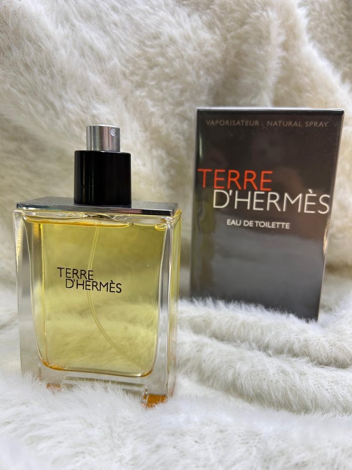 Terre d'Hermès, çağdaş Parisli erkekler için bej ve gri renklerde, doğal spreyli Eau de Toilette parfümdür.