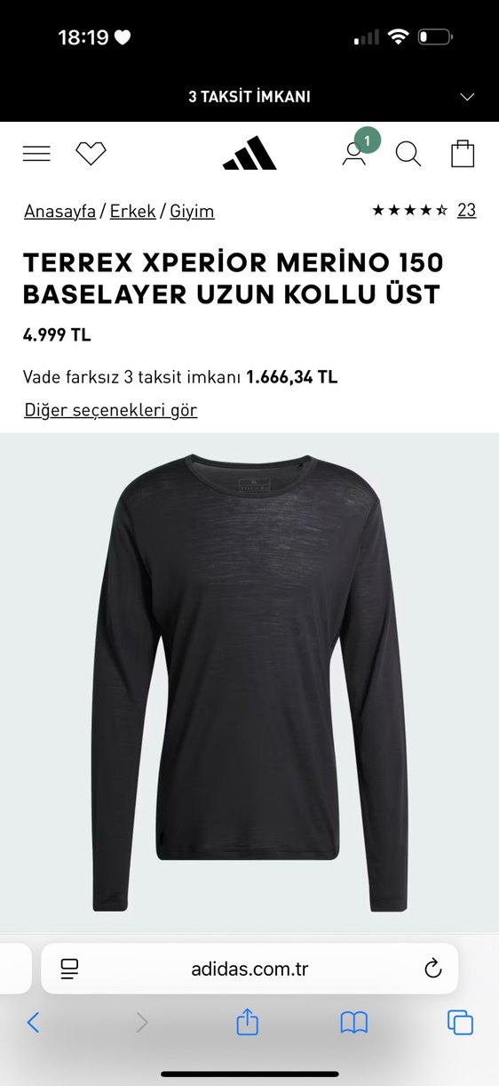 Terrex Xperior Merino 150 uzun kollu baselayer üst, regular fit kesimi ve sade siyah rengiyle konforlu ve nefes alabilir merino yün kumaş sunar.