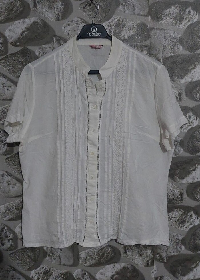 Butik ürün. Beden uyuşmazlığından satışta. Az kullanıldı. Kırık beyaz. Önü güpürlü. Çok şık. İki kol arası 58 cm, omuzdan boy 60 cm, kol boy 20 cm