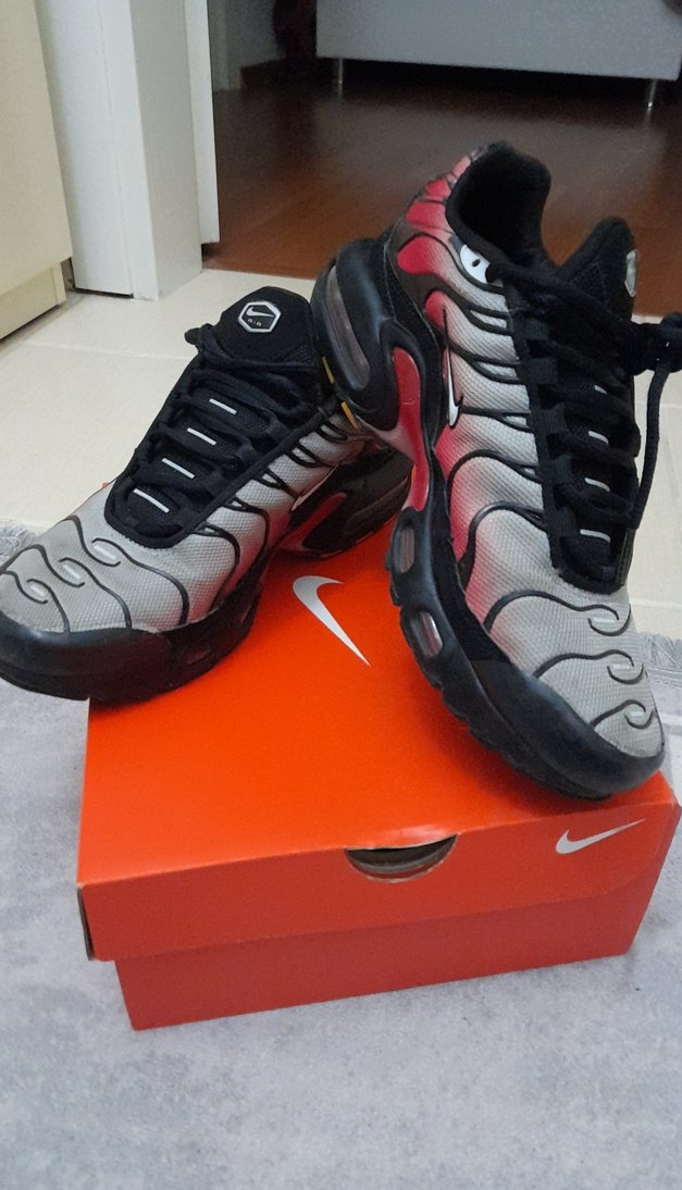 Nike marka, bağcıklı ve baskılı gri erkek spor ayakkabısı. Kauçuk tabanlı, spor ve sokak tarzına uygun.Nike TN hiçbir kusuru yok yeni gibi.Kuculdüğu için satıyorum.38,5Makul teklifler kabul edilir.