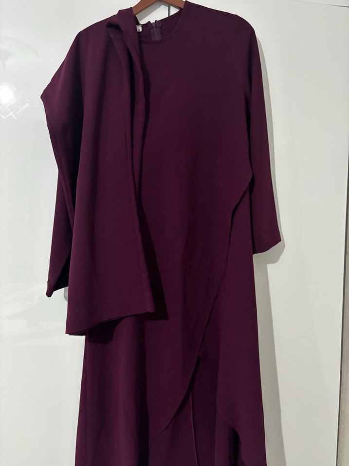 Çok kaliteli bir takım yeri Medine ipeği deniyor sanırım pantolon tunik olarak 2 parçadan oluşuyor hiçbir kusuru yoktur mürdüm rengi gibi