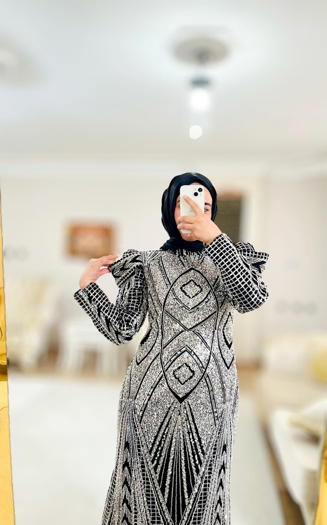 gümüş taş işlemeli arkası ipli şekilde 38-40-42 beden uyumlu şal dahil gönderim yapıyoruz