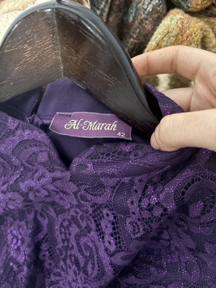 Mor renkli, dantel işlemeli, uzun kollu hiçbir sorunu yoktur