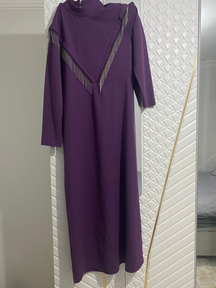 lila rengi tesettür abiye göğüs kısmı detaylı likralı 38 40 beden uyumlu temiz duruşu çok zarif ve güzeldir alana hayırlı olsun