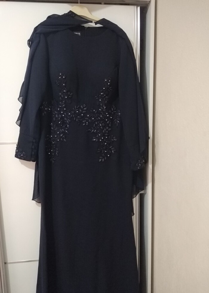 Ürün balık model işlemeli 44_ beden e uyumlu arkası uzun yaklaşık 4 kilo ağırlığında butik ürünü birkerei kere giyildi iki koltuk arası 50 cm