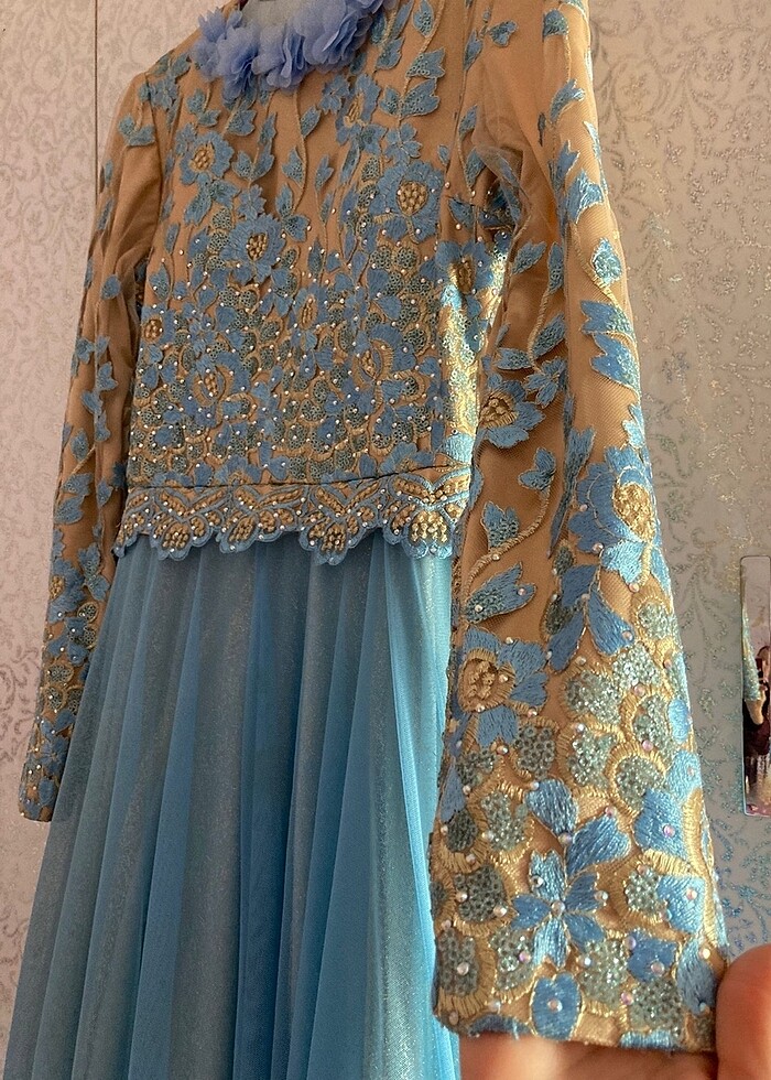 36-38 beden tesettür abiye açık mavi altı katlı kabarık bir kere giyildi temiz